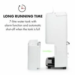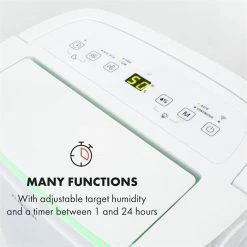 - Nombreuses fonctions: réglage du niveau d’humidité-cible et de la minuterie entre 1 et 24 heures
