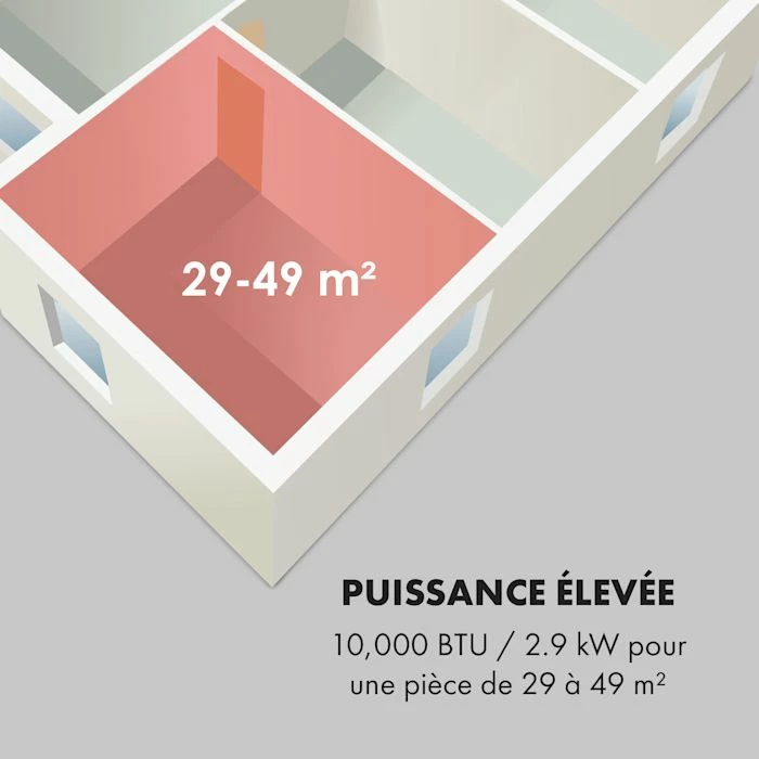 - Puissant : convient aux pièces de 29 à 49 m².