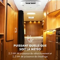 - Puissant par tous les temps de camping : 2,5 kW de puissance de refroidissement et 2,2 kW de puissance de chauffage