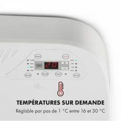 - De 16 à 30 °C : température cible régable par paliers de 1 °C