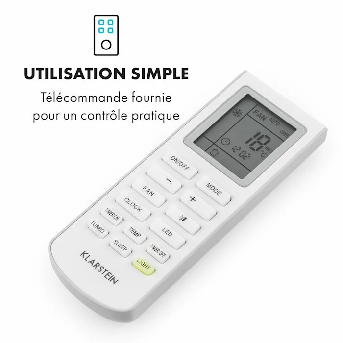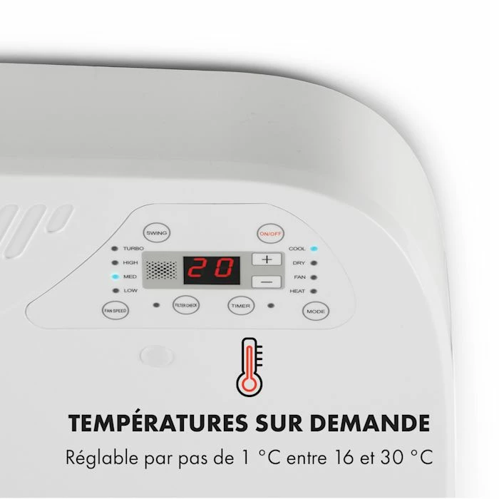 - Mode climatisation : Fonctionnement standard pour rafraîchir avec réglage de la température entre 16 et 30 °C