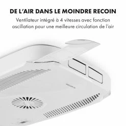 - Ventilateur avec oscillation : 4 vitesses pour une circulation d’air idéale