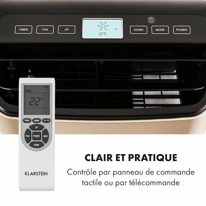 - Clair et pratique : Contrôle par panneau de commande tactile ou télécommande