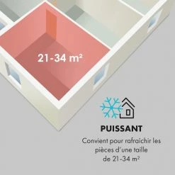- Puissant : convient pour rafraîchir des pièces d’une superficie de 21 à 34 m²