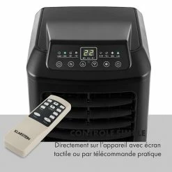 Le climatiseur Klarstein Pure Blizzard 3 2G avec ventilateur et déshumidificateur intégrés rafraîchit les chaudes journées d’été avec de l’air ambiant clair et rafraîchi de 17 à 30°C. L’appareil Klarstein est équipé d’un compresseur puissant mais économique pour le refroidissement de l’air. Une puissance de refroidissement de 7000 BTU/2,1 kW ou une puissance absorbée correspondante de 808 W confère au Pure Blizzard 3 2G la classe d’efficacité énergétique A et en fait un appareil approprié pour un fonctionnement permanent. L’air frais qui s’échappe peut être dirigé de manière idéale au moyen de lamelles horizontales et verticales.