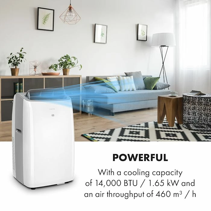 - Puissant : 14000 BTU / 4,1 kW avec un débit d’air de 460 m³/h