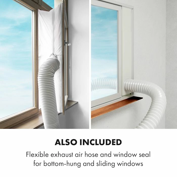 - Pour les fenêtres basculantes et coulissantes : avec flexible d’évacuation et joint de fenêtre