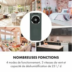 - Nombreuses fonctions : avec 4 modes de fonctionnement, 3 vitesses de ventilation et une capacité de déshumidification de 23 l/h