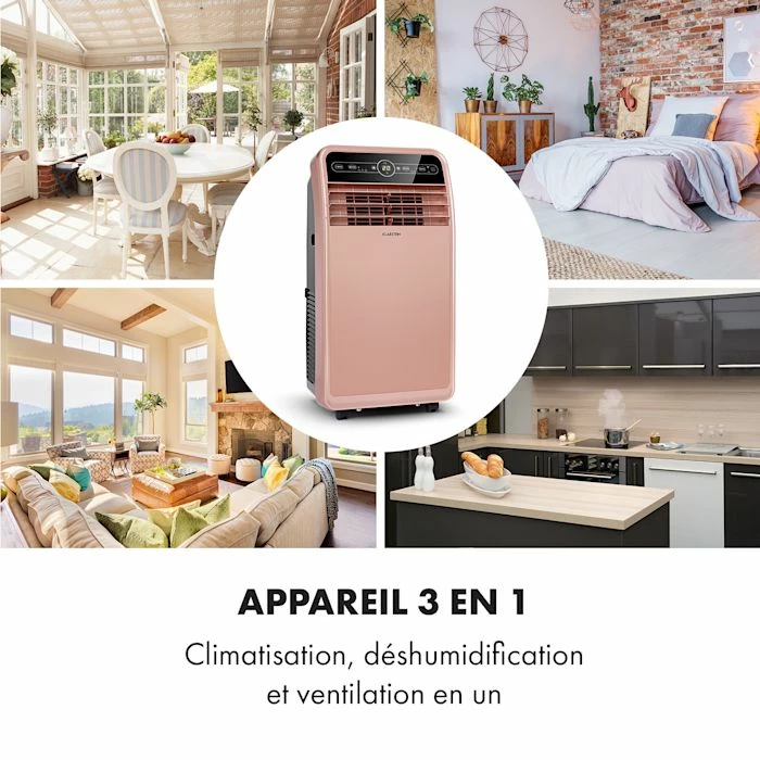 - 3-en-1 : climatiseur, ventilateur et déshumidificateur en un seul appareil