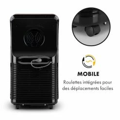 Le climatiseur mobile Klarstein Metrobreeze New York Smart 12k produit un air pur et frais pendant les chaudes journées d’été et améliore le climat ambiant grâce à la combinaison d’un ventilateur et d’un déshumidificateur. L’appareil est également doté d’un compresseur puissant mais économique pour le refroidissement de l’air. 12000 BTU, soit 3,5 kW, permettent au Metrobreeze New York Smart 12k d’atteindre la classe d’efficacité énergétique A et en font un appareil à fonctionnement continu adapté aux pièces de 35 à 59 m².