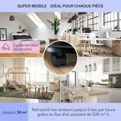 - Puissant : avec Puissance de refroidissement de 7 000 BTU / 2,1 kW et débit d’air de 320 m³/h