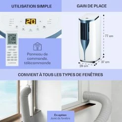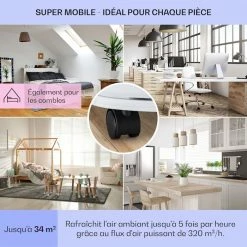 - Puissant : Avec une puissance de refroidissement de 7 000 BTU / 2,1 kW et un débit d’air de 320 m³/h