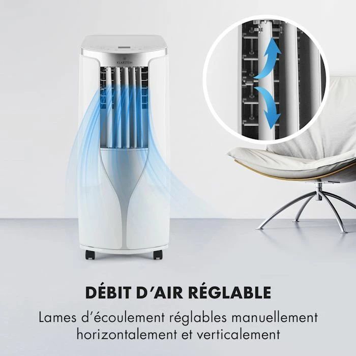 - Puissant : Avec une puissance de refroidissement de 7 000 BTU / 2,1 kW et un débit d’air de 320 m³/h