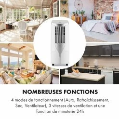 - 3 modes de fonctionnement : climatisation, déshumidification et ventilation
