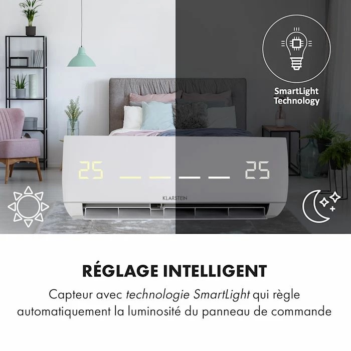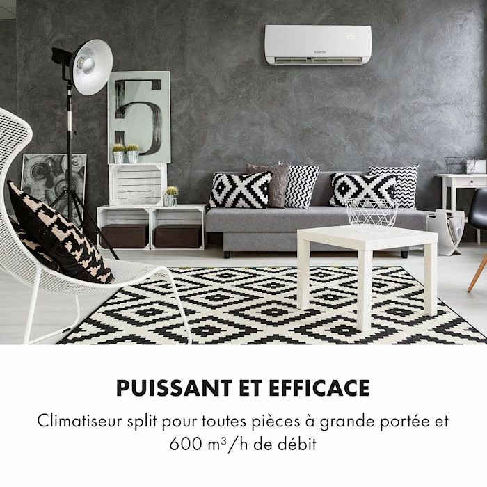 - Puissant et efficace : climatiseur split facile à installer et à grande portée avec 600 m³/h de débit