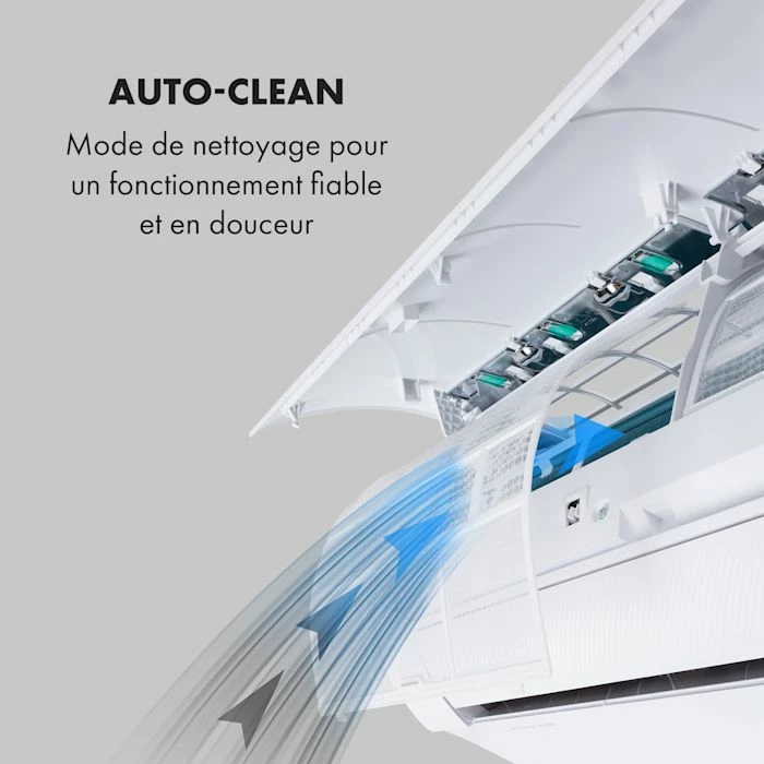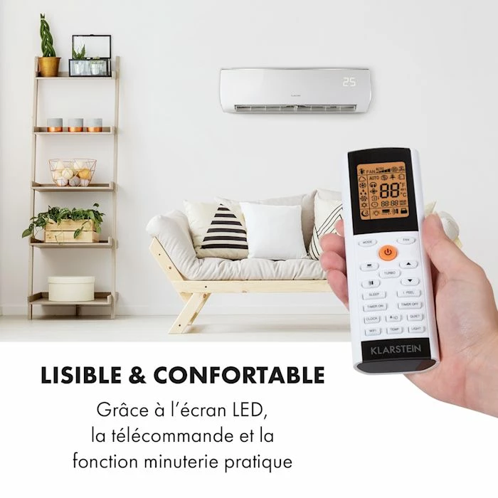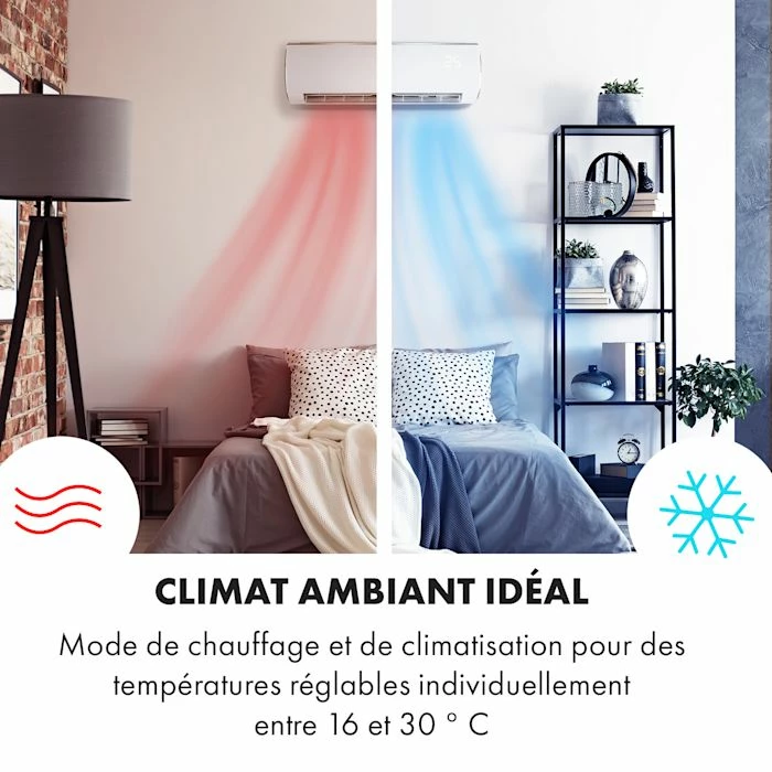- Puissant et efficace : climatiseur split de 9000 BTU/2,7 kW et débit d’air de 610 m³/h pour les pièces de 26-44 m²