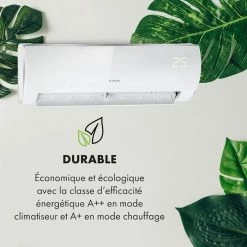 - Durable : fonctionnement économique et écologique avec la classe d’efficacité énergétique A++ en mode climatiseur et A+ en mode chauffage