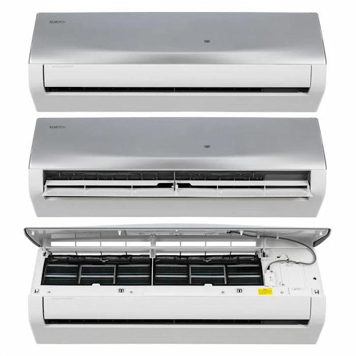 Climatiseur split extrêmement économe pour refroidir, réchauffer et déshumidifier toutes sortes d’espaces intérieurs avec une classe A++ d’efficacité énergétique. 5 modes de fonctionnement au choix : automatique, refroidissement, déshumidification de l’air, ventilateur et chauffage pour une température agréable de 16 à 30 °C. Appareil intérieur peu bruyant avec un flux d’air jusqu’à 850 m³/h et commande confortable par télécommande pour par l’application de contrôle.