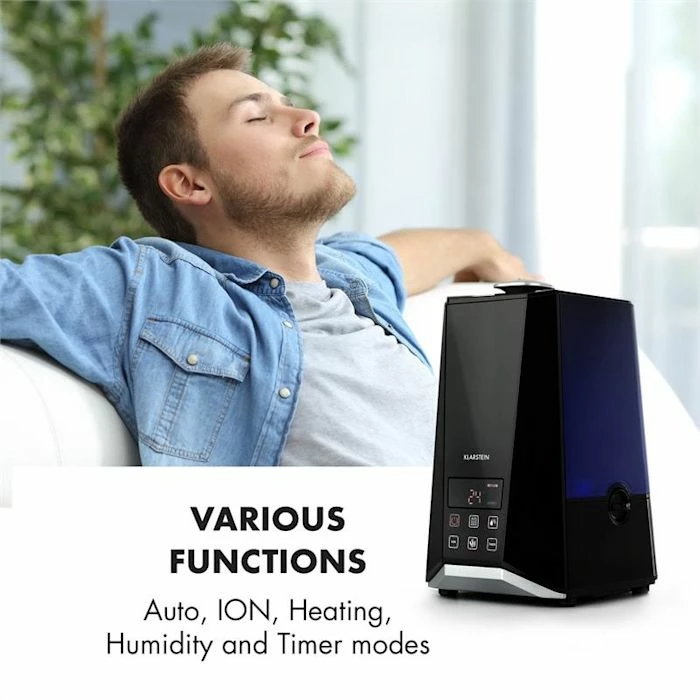 Respirez profondément ! L’humidificateur d’air Klarstein VapoAir Onyx assure un climat intérieur frais et détend les voies respiratoires.