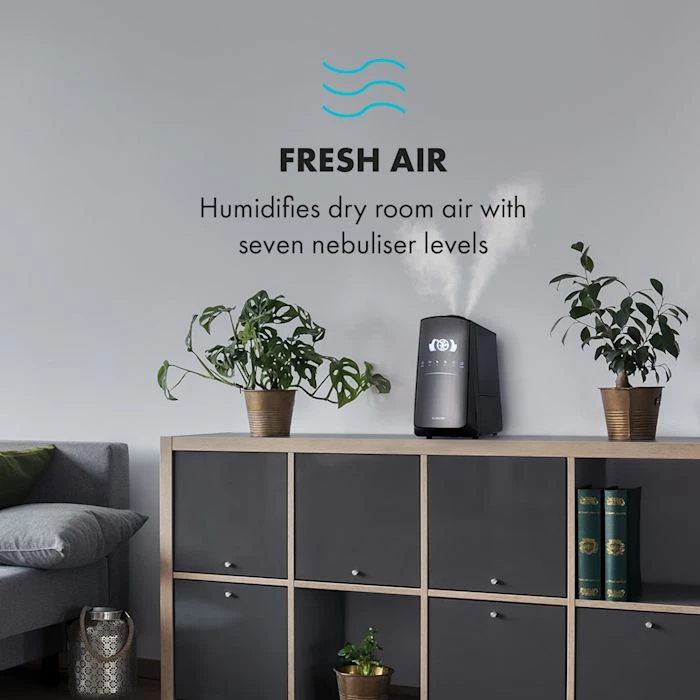 - Un air frais : humidifie l’air ambiant sec avec sept niveaux de nébulisation