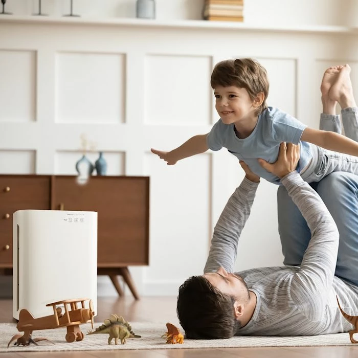 - Respirez à fond : le purificateur d’air élimine les poussières fines, les allergènes, le pollen, les microbes et les odeurs