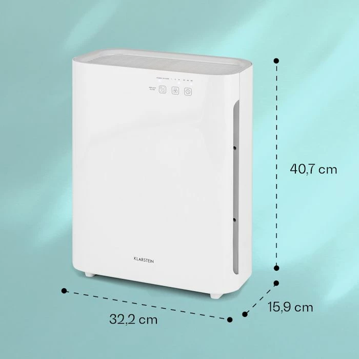 Allergiques, respirez à fond. Le purificateur d’air Klarstein Vita Pure 2G nettoie l’air de votre pièce avec une efficacité multipliée par 5. La combinaison astucieuse d’un pré-filtre, d’un filtre HEPA13, d’un filtre à charbon actif, d’un stérilisateur UV-C antibactérien et d’un ioniseur élimine très efficacement la poussière, les allergènes, les microbes et les odeurs. Au cœur de ce dispositif se trouve le filtre HEPA13, qui élimine 99,97 % de toutes les particules présentes dans l’air. L’écran tactile à l’avant permet de contrôler facilement et rapidement l’appareil et affiche clairement les réglages effectués. Avec un niveau sonore de seulement 50 dB au niveau le plus élevé, le purificateur d’air Klarstein Vita Pure 2G est agréablement silencieux dans son activité de nettoyage.