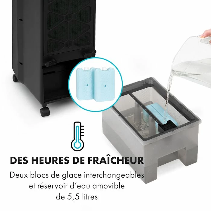 - Réservoir d’eau de 5,5 litres pour une grande autonomie de climatisation sans refaire le plein