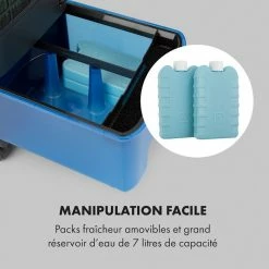- Refroidir pendant des heures : deux batteries de refroidissement et un réservoir d’eau d’un volume de 7 litres