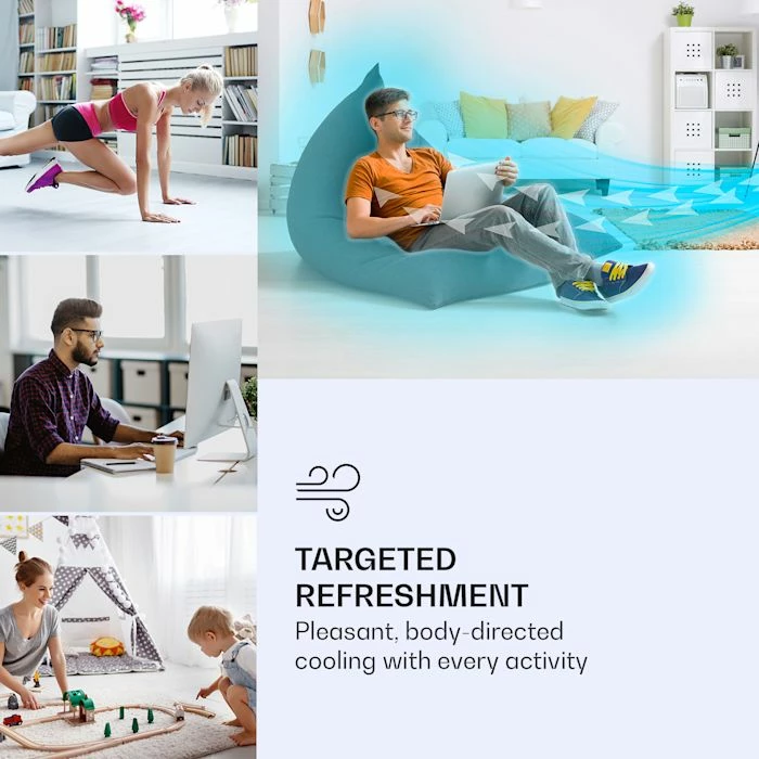 - Dans tous les angles : oscillation horizontale activable pour une ventilation optimale