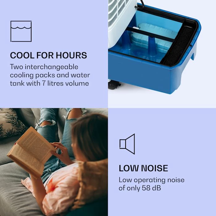 - Des heures de fraîcheur : deux accumulateurs de froid interchangeables et un réservoir d’eau de 7 litres
