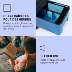 - Des heures de fraîcheur : deux accumulateurs de froid interchangeables et un réservoir d’eau de 7 litres