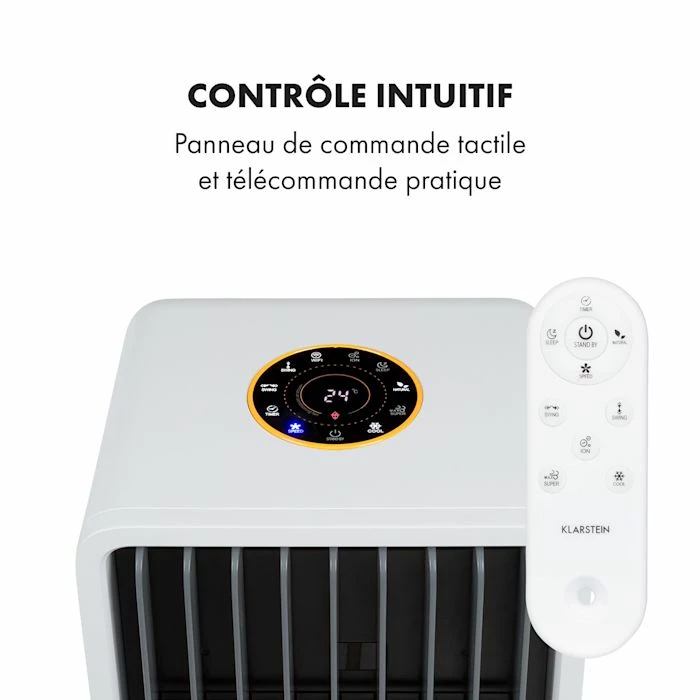- Minuterie : jusqu’à 24 heures en mode ventilation / jusqu’à 8 heures en mode rafraîchissement d’air