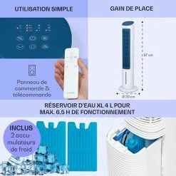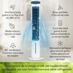 - 4-en-1 : refroidisseur d’air, ventilateur, humidificateur et purificateur d’air