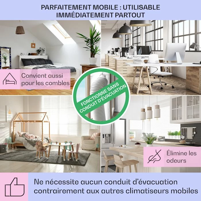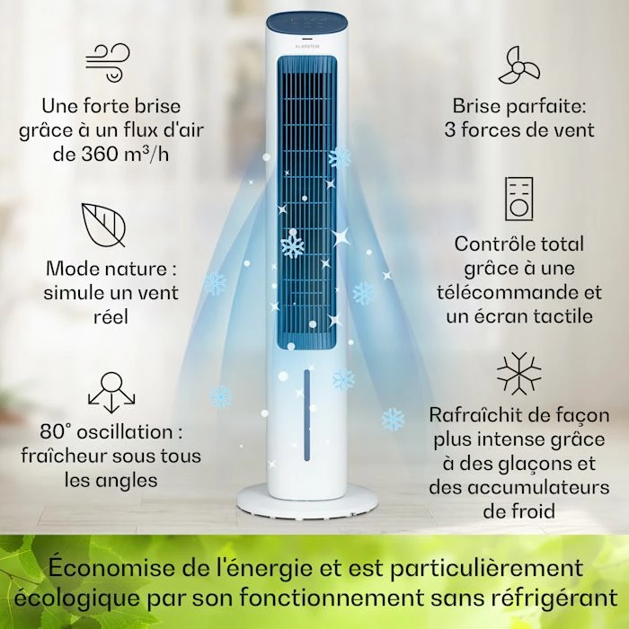 - 5 en 1 : ventilateur avec un débit d’air de 360 m³/h, refroidisseur d’air, humidificateur et purificateur d’air