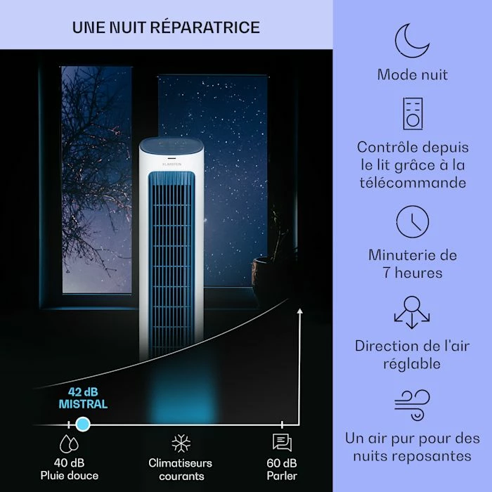 - Fonction ionisateur : filtre les particules de poussière et d’odeur dans l’air