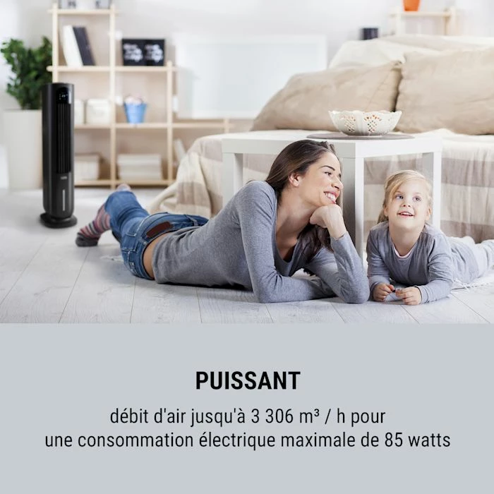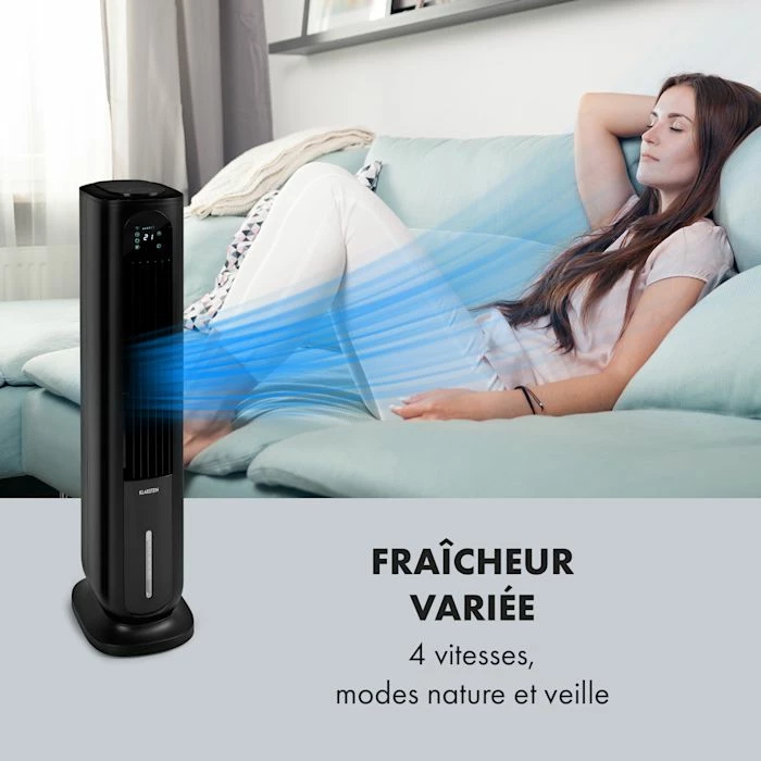Rafraîchissement maximum ! Le rafraîchisseur d’air 4-en-1 Klarstein Polar Tower Smart fournit un rafraîchissement précis lors des chaudes journées d’été. À la fois ventilateur, rafraîchisseur, humidificateur et purificateur d’air, il assure partout un flux d’air rafraîchissant pour garder la tête froide.