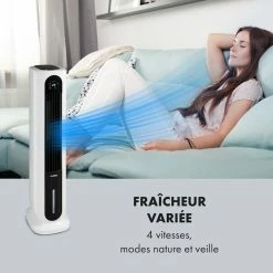 Rafraîchissement maximum ! Le rafraîchisseur d’air 4-en-1 Klarstein Polar Tower Smart fournit un rafraîchissement précis lors des chaudes journées d’été. À la fois ventilateur, rafraîchisseur, humidificateur et purificateur d’air, il assure partout un flux d’air rafraîchissant pour garder la tête froide.