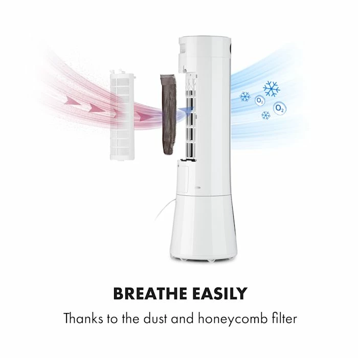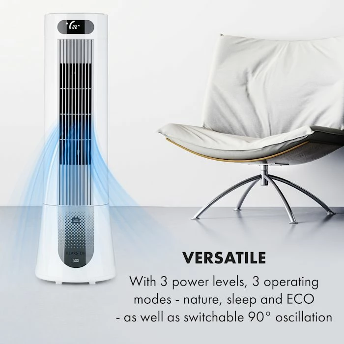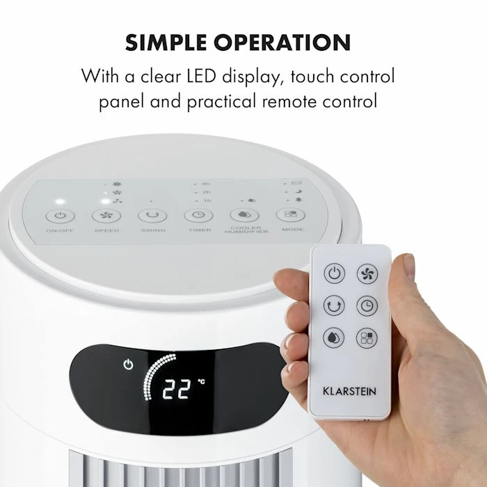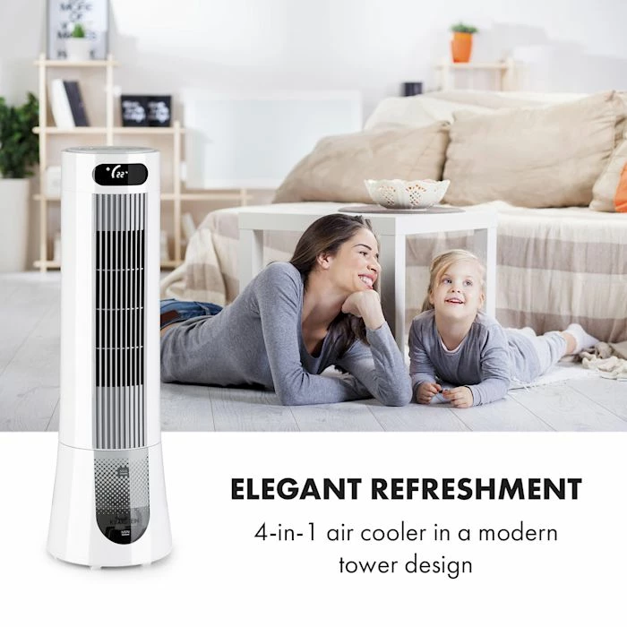 Un quadruple rafraîchissement : le rafraîchisseur d’air Klarstein Skyscraper Frost vous offre une brise fraîche en tant que ventilateur, rafraîchisseur, purificateur d’air et humidificateur.