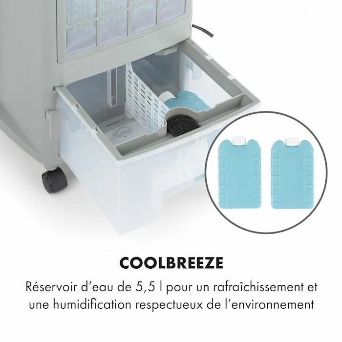 - Des heures de fraîcheur : deux accumulateurs de froid interchangeables et un réservoir d’eau de 5,5 litres
