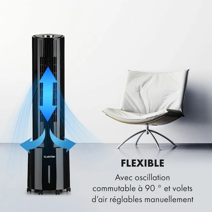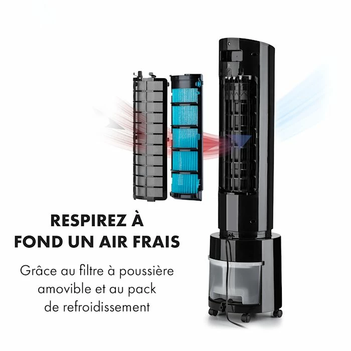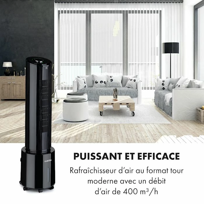 - Puissant et efficace : rafraîchisseur d’air de conception moderne en forme de tour avec un débit d’air de 400 m³/h