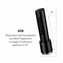 - Sûr : grâce à l’interrupteur anti-basculement, qui éteint l’appareil si l’angle d’inclinaison dépasse 10°