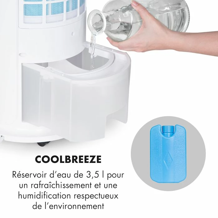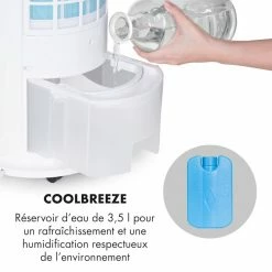 - CoolBreeze : réservoir d’eau de 3,5 litres pour humidifier le flux d’air