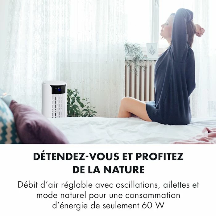 - S’endormir en toute fraîcheur : mode Sommeil avec faible bruit de fonctionnement et minuterie d’arrêt de 8h