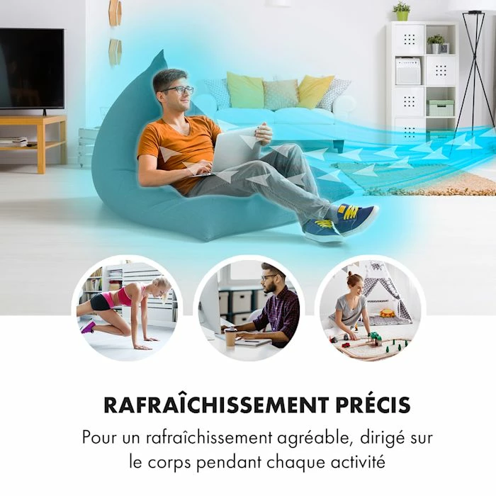 - Turbine : oscillation à 360° à commande séparée pour de l’air frais dans le moindre recoin