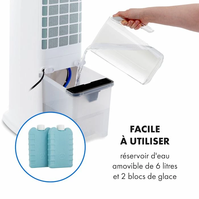 - Facile à manipuler: réservoir amovible avec un volume de 6 litres et 2 blocs réfrigérants