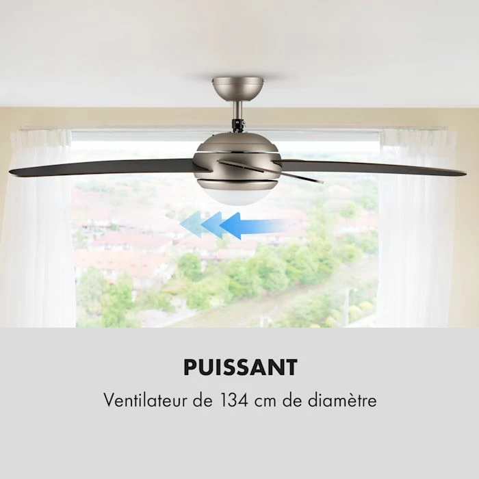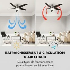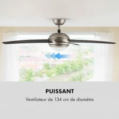 - Ventilateur avec diamètre de 134 cm et deux sens de rotation : flux d’air vers le plafond ou vers le sol