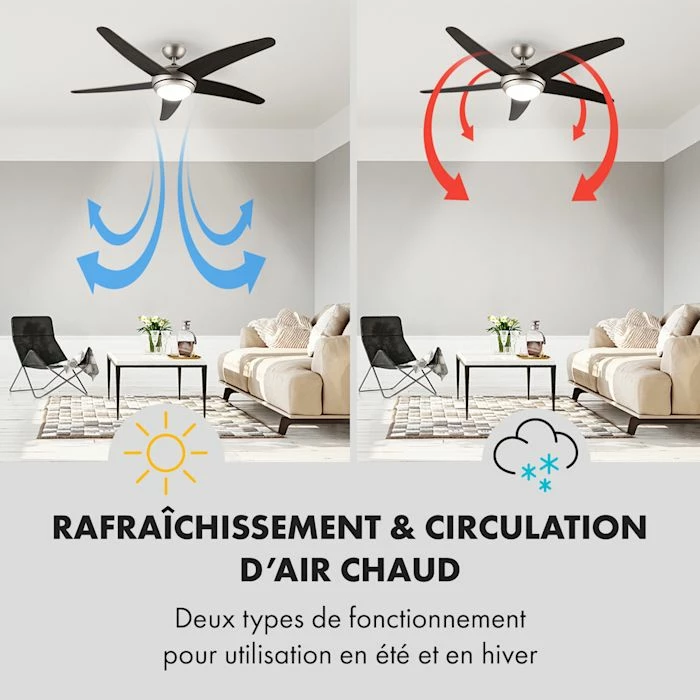 - Flux d’air vers le plafond pour les jours frais : répartition de la chaleur dans la pièce