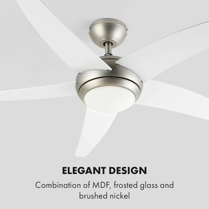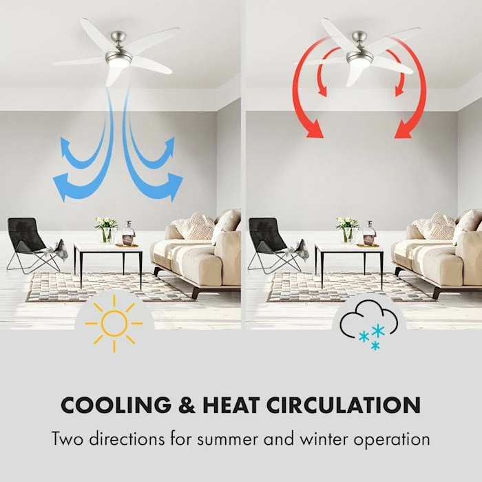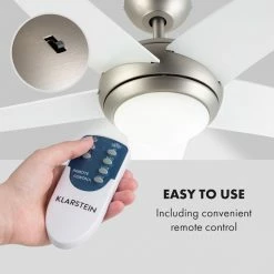 Klarstein vous apporte de la lumière et de l’air frais dans chaque pièce avec le ventilateur de plafond 2-en-1 Bolero. Tout aussi pratique que luxueux, il combine un ventilateur de plafond avec un plafonnier. Cette association s’avère très astucieuse car la plupart des pièces ne disposent généralement que d’un branchement électrique pour une lampe de plafond – sans oublier que la lampe et le ventilateur sont idéalement situés au milieu du plafond. Le Bolero vous épargne tout travail d’installation complexe, car il utilise tout simplement le branchement disponible pour les deux appareils.