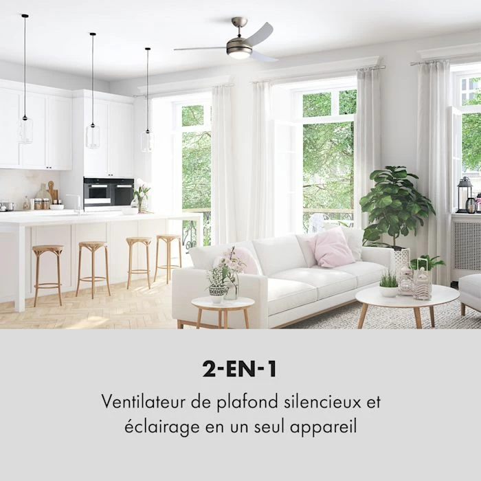 - 2-en-1: ventilateur de plafond et plafonnier en un seul appareil