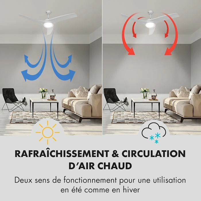 - Sens vers la droite : répartit l’air chaud du plafond par temps froid